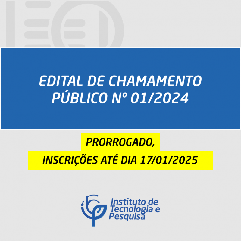20/03/2025 - EDITAL DE CHAMAMENTO PÚBLICO Nº 01/2024 COMUNICADO DE REABERTURA DO PRAZO DE INSCRIÇÃO O INSTITUTO DE TECNOLOGIA ...
