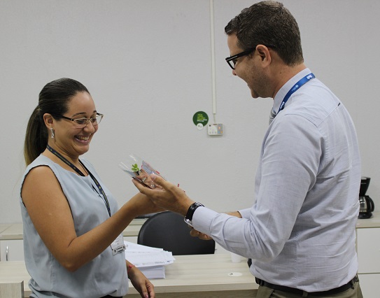 E o Dia Internacional da Mulher não passou em branco para as colaboradoras do setor administrativo do Instituto de Tecnologia e Pesquisa (ITP). Na tarde da última terça-feira, dia 8 de março, o Diretor-Presidente da instituição, o Dr. Diego Menezes, e o Diretor Administrativo-financeiro, Mário César Campos Leal, distribuíram rosas para as mulheres que trabalham no administrativo. “Esta é uma pequena homenagem, e também a forma que encontramos de reforçar para vocês a importância que possuem para o ITP, afinal de contas, a alma de qualquer empresa é o ser humano. Também aproveitamos o momento para dizer que nesta gestão participativa vocês serão sempre ouvidas, pois, trabalhar em união é sempre muito melhor”, declarou o Diretor-Presidente do instituto.